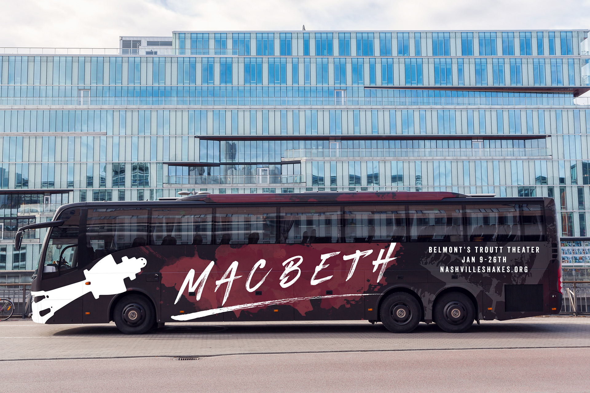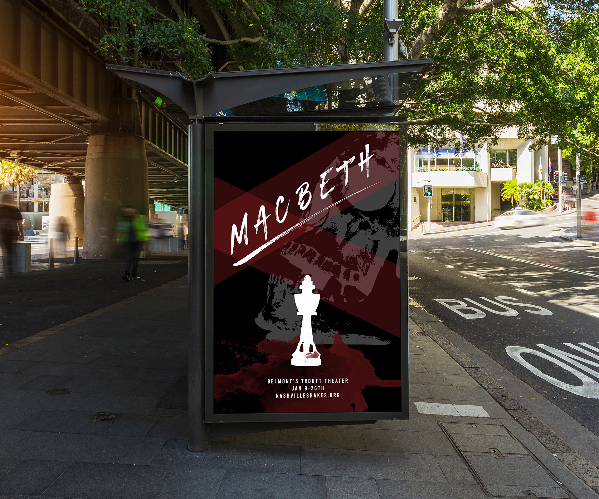 In my Practicum class I was assigned to find a play and to create three methods of advertisement for it. A poster, siding on a bus, and light pole banners.